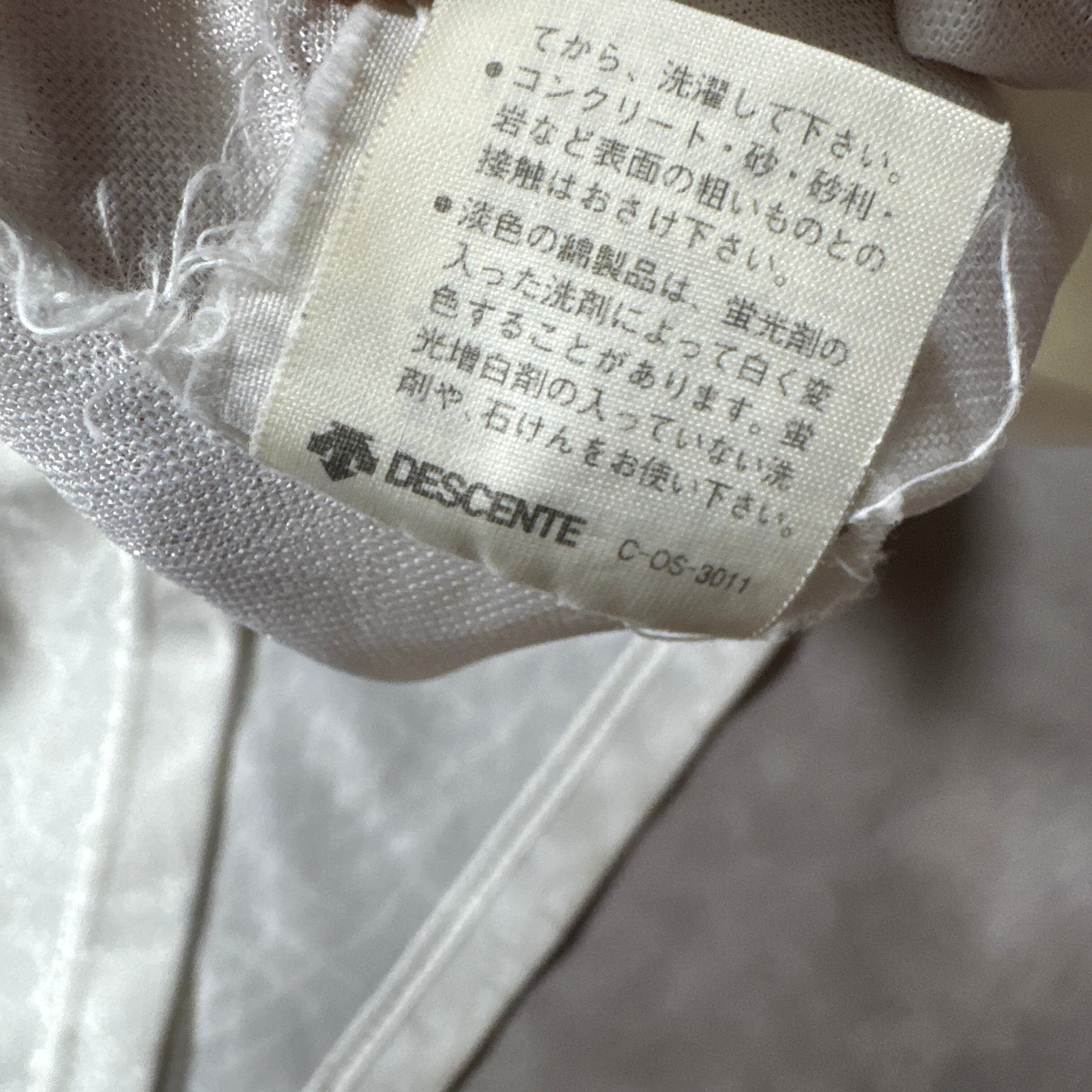 ホワイトをベースにブラック・レッド・イエローのダイヤ型デザインが肩から胸にかけて広がる、90年代を象徴する名作。光沢感ある生地とオーバーサイズシルエットが融合し、ストリートでも存在感を放つ一着です。