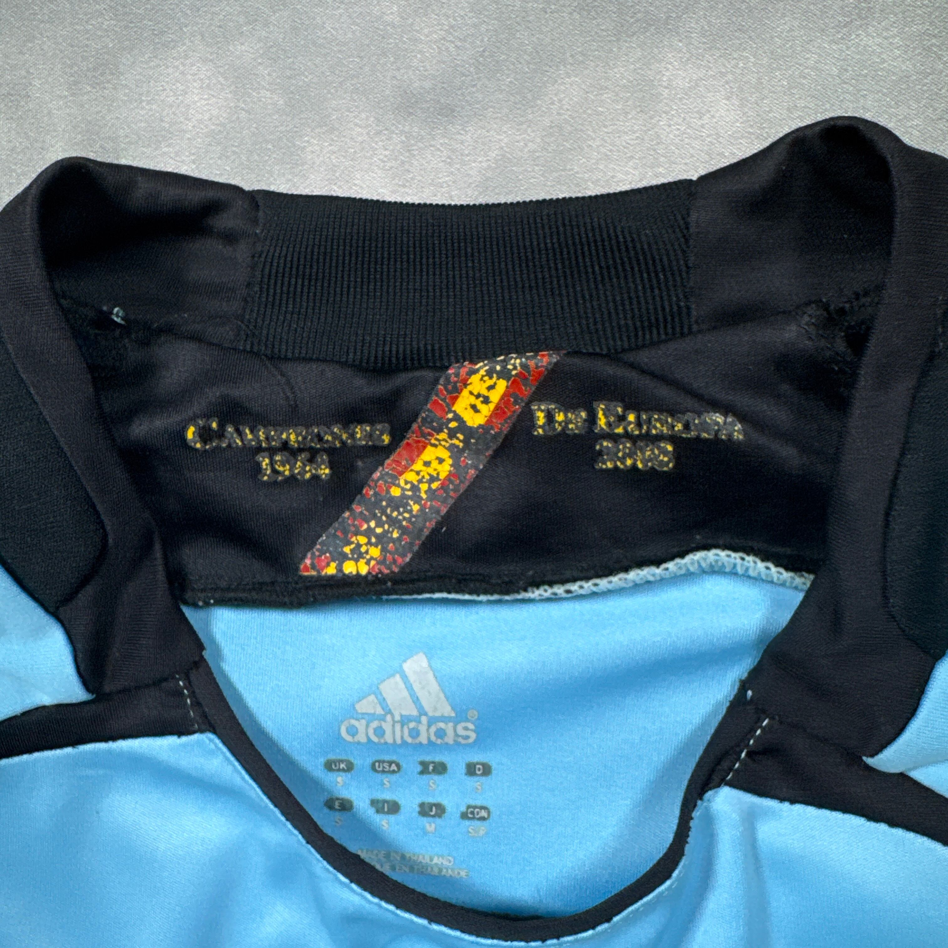 胸には世界王者の証であるゴールドの星が輝き、内襟には「Campeones de Europa 1964・2008」の文字。欧州制覇と世界制覇を記念する、まさに伝説級のユニフォーム。